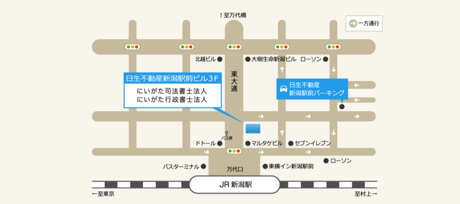 | 本社(新潟駅前事務所)所在地 | 〒950-0087 新潟市中央区東大通1丁目4番5号 日生不動産新潟駅前ビル3階 |
